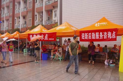 今年迎新工作,后勤提出了“以人为本方便快捷”的工作口号,各部门工作以方便学生为宗旨,尽量减少学生在报到各环节的时间,有效提高了服务效率。学生公寓管理中心在9月8日将学生住宿安排名单制定后,除发放给各个院系及保卫处等职能部门外,还和校宣传部、团委合作,将名单发放到了学校网络论坛上,有效提高了学生查找宿舍的效率。膳食服务中心,全天开放锦绣楼食堂,在报到点设立盒饭售卖点,为学生、家长及工作人员及时提供伙食供应。节能办公室,除保障现场报到点的电力供应外,今年对新生宿舍采取了预先供电,事后核算的方法,让新生不用办手续,先用上电。校医院采取多点同步的策略,增派人手,多开窗口,有效分散各项目,有效减少学生排队等待时间。此外,集团还根据实际情况,开展了各项便民举措,设立免费饮水点,免费开放兰苑4舍给新生家长临时休息等等。