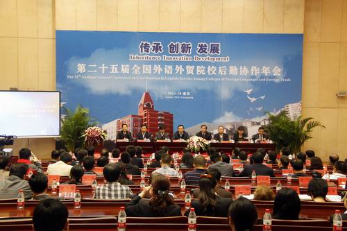 第二十五届全国外语外贸院校后勤协作年会于2011年10月19日至2011年10月21日在我校隆重举行。来自北京外国语大学、北京语言大学、北京第二外国语学院、国际关系学院、外交学院、对外经贸大学、上海外国语大学、上海对外贸易学院、西安外国语大学、广东外语外贸大学、天津外国语大学、大连外国语学院、解放军国际关系学院、解放军外国语学院以及我校共15所外语外贸院校,100余名代表包括12名校级领导参加了本次会议。
